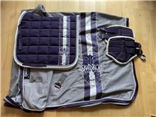 Säljer detta nya set bestående av en dressyrschabrack med bandage och flughätta.
