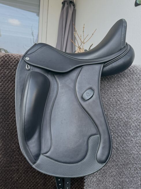 Sadelbommen i nylon med kolfiberinsats är speciellt utvecklad för att uppfylla dressyrryttarnas krav. Den är elastisk och följer därför hästens rörelser perfekt. Den har ett smalt snitt för nära kontakt mellan ryttarens ben och hästen. Sitsen är ergonomisk och möjliggör en djup sittställning. Tack vare den revolutionerande Mag-mekanismen kan stålplattan justeras perfekt med millimeterprecision med hjälp av Mag-nyckeln och anpassas till hästens rygg med bara några enkla steg.