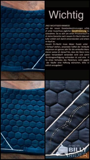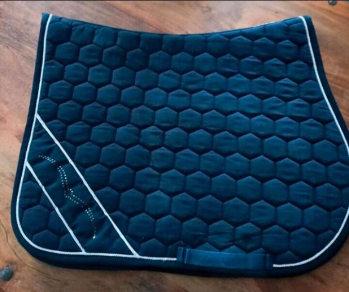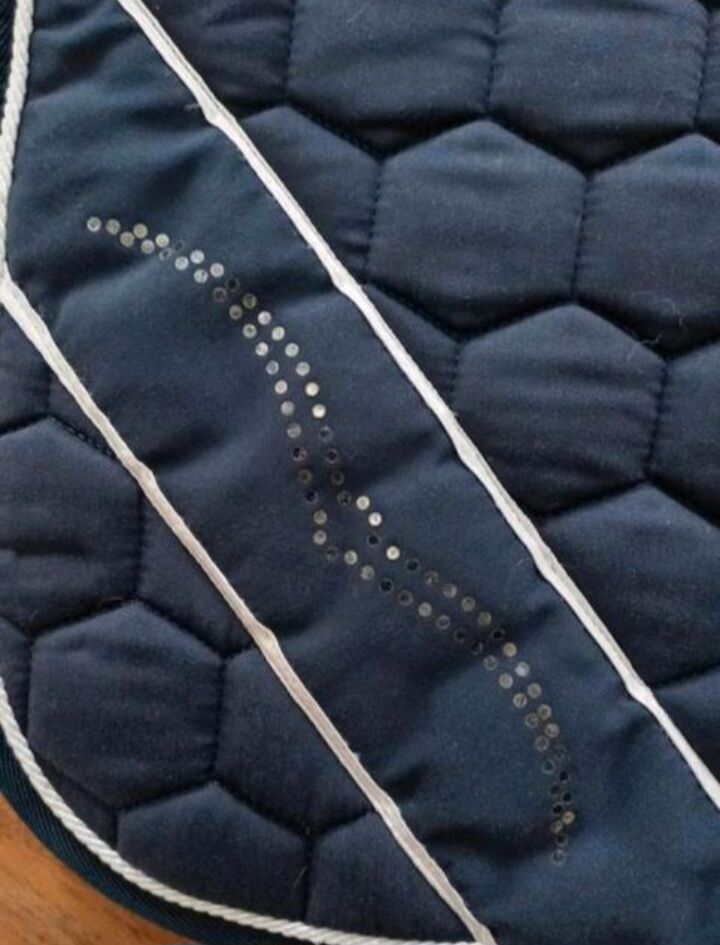 ⭐️Animo⭐️Schabracke VS i storlek WB - VS schabrak WB från Animo i marinblå färg med vit sladd. Logotyp i glittrande stenar, varav en del tyvärr redan har gått förlorade enligt foton.