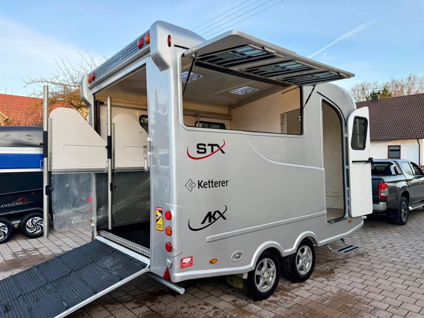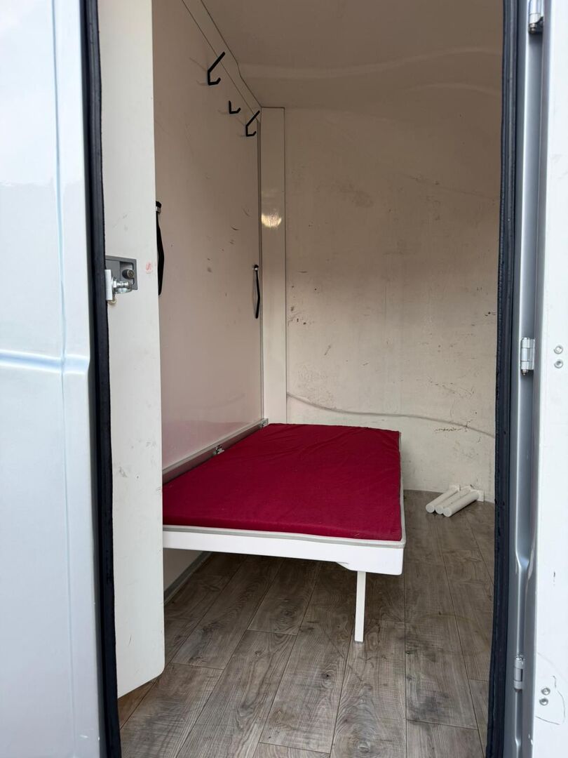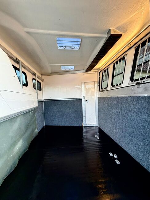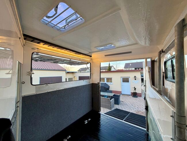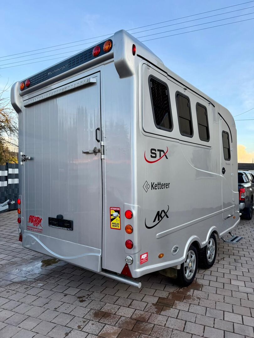 - Första registrering 03/2019 - Vikt utan last 1850 kg - Tillåten totalvikt 3500 kg - Max. dragstångsbelastning 150 kg - HU fram till mars 2028 - Fälgar av aluminium HÄSTDELAR: - ALUMINIUMGOLV - Gummigolv limmat och tätat - 2 takluckor - Fönster med gångjärn - Skjutbara fönster - Komplett trappstegsskydd i inredningen - Två svängbara och skjutbara skiljeväggar av PVC - Lång lastningsramp för plan påfart SADELKAMMARE: - Fällbar säng