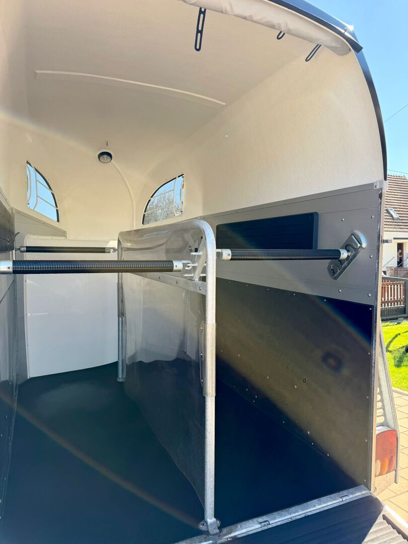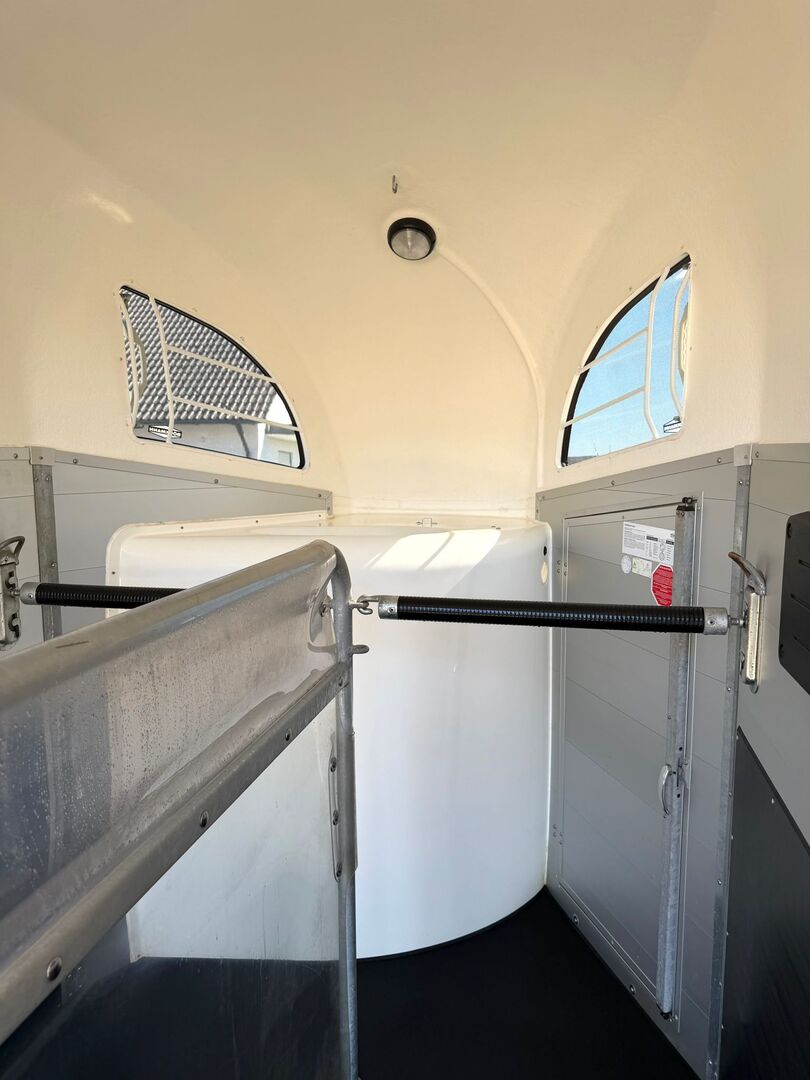 - Första registrering 10/2019 - tillåten totalvikt 2400 kg - max. dragstångsbelastning 100 kg - HU fram till augusti 2027 - CFF Plus-chassi med stötdämpare för 100 km/h-godkännande - Automatiskt jockeyhjul - Öppningsbara tonade fönster - POLYBUG - Paniksystem - Lastningshjälp - Lyft för presenning - Sadelkammare med utdragbara sadelhållare, kvast, spade - Skydd för fotsteg - Polstring på sidorna - Integrerat fodertråg - Hållare för hönät - Invändig belysning - Skiljevägg i PVC helt flyttbar med justerbar svängbar stång - NIVELLERING AV PONNY - Gummigolv limmat och tätat - GOLV I ALUMINIUM - Sidostopp på lastningsrampen