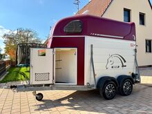 - Första registrering 03/2013 - Vikt utan last 710 kg - Tillåten totalvikt 2000 kg - Max. belastning dragstångsbelastning 100 kg - Däck från 2021 - HU fram till april 2027 - Automatiskt jockeyhjul - Paniksystem - Öppningsbara tonade fönster - Taklucka - Reservhjul - Nät rullgardin - Rampdörr kombination - integrerat fodertråg - Hållare för hönät - Invändig belysning - Skiljevägg av PVC, helt flyttbar med justerbar svängbar balk - GOLV I ALUMINIUM - Gummigolv limmat och tätat - Vaddering på sidorna - Skydd för steg - Nivellering för ponny - Låsbart sadelkammare med sadelhållare - Polybug
