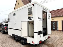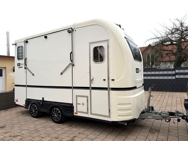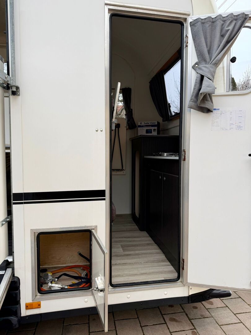 - Första registrering 06/2018 - Vikt utan last 1380 kg - Tillåten totalvikt 3000 kg - Max. dragstångsbelastning 150 kg - HU fram till december 2027 - Automatiskt jockeyhjul - Låsbart separat sadelkammare med sadelhållare och tränshållare - Flera skjutbara fönster - Taklucka - Fönster vid entrédörren - Mycket ljust - Bakre ingångsdörr kan låsas - Lastningsramp med trappsteg på sidan - Multijusterbar och svängbar mittskiljevägg - GOLV AV ALUMINIUM - Golv av gummi - Invändig belysning - Skydd för fotsteg - Reservhjul - Interiörkamera med monitor - Däck från 2024 - Chassi med stötdämpare för godkännande för 100 km/h