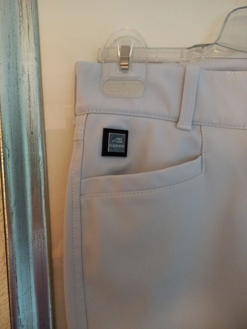 ⭐️Equiline⭐️Neuwertige Ridbyxor Fullgrip i D38 - Mycket välskötta (tävlings)byxor från Equiline, modell Adellek, i tillverkarens storlek I42, vilket motsvarar D38. Färg vit. Endast buren 2 gånger på utställning, i toppskick! Nypris var 225 €.