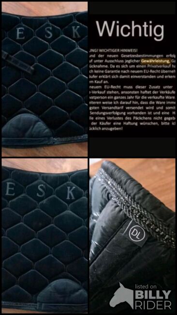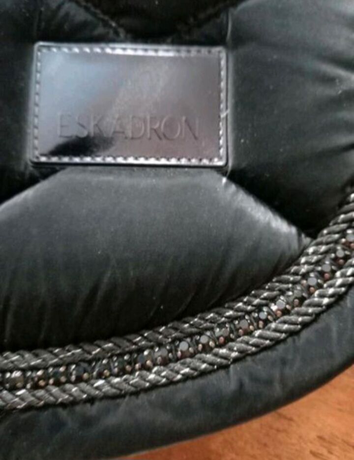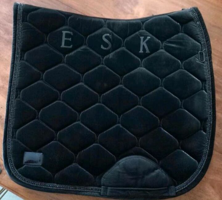 ⭐️Eskadron⭐️Dressurschabracke Svart Shiny i storlek WB - Svart dressyrschabrake WB från Eskadron. Avtagbara kardborreöglor. Lätt glänsande tyg (100% polyester), kantat med 2 glittrande snören och en rad svarta strassstenar. För ett glänsande utseende! Såvitt jag vet inte längre tillgänglig i butik. NP: 99 €.