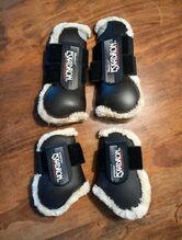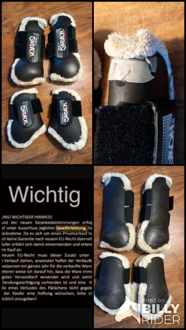 ⭐️Eskadron⭐️Set Stövlar med hårt skal + fetlockstövlar fauxfur - Välskötta hårdskalsstövlar och matchande långa fotsulor från Eskadron, flexisoft, av Ludger Beerbaum, i storlek WB. Färgen är mörkbrun, nästan svart. Alla utrustade med vacker mjuk päls.