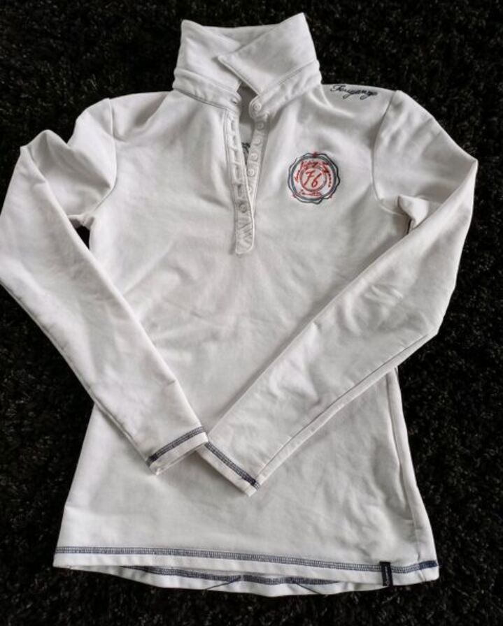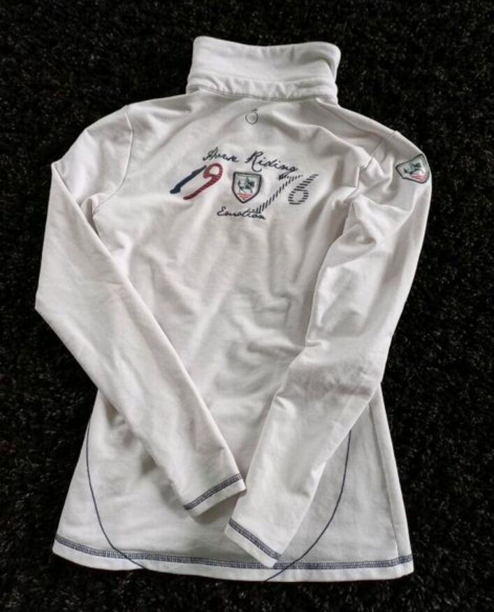 ⭐️Fouganza/Träningströja XXS/D34 - D36⭐️ - Vit träningströja med applikationer från märket Fouganza i storlek XXS eller D34 - D36. Mycket stretchigt material. Tröjan är i bra, begagnat skick.