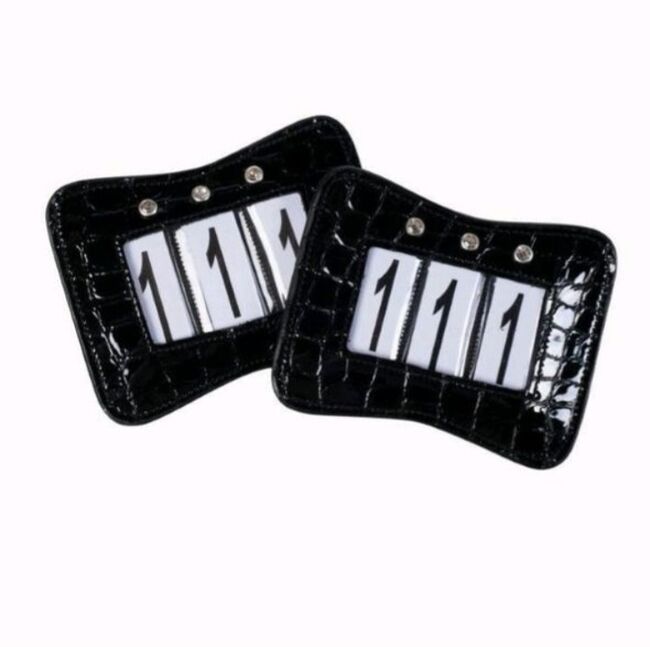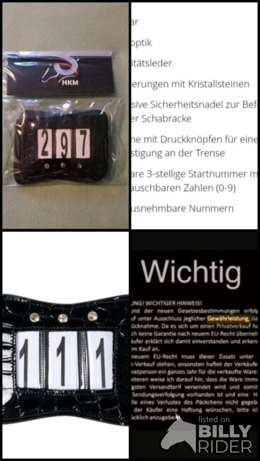 ⭐️HKM⭐️Neues Startnummer set Viola - NY tävlingsnummersats i original HKM-förpackning, modell Viola. Svart, krokodil, var och en med 3 glittrande stenar. Vänligen se bilderna för ytterligare information från tillverkaren. NP var 23 €.