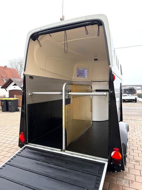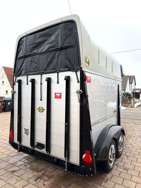 - Första registrering 08/2010 - Vikt utan last 834 kg - Tillåten totalvikt 2000 kg - Max. belastning dragstångsbelastning 100 kg - HU fram till oktober 2027 - Automatiskt jockeyhjul - Öppningsbara tonade fönster - Champ-chassi med stötdämpare för 100 km/h-godkännande - Däck från 2024 - Paniksystem - Låsbar sadelkammare - Sidostopp på lastningsrampen - Hjälpmedel för lastning - Rullgardin med nät - Invändig belysning - Hållare för hönät - Integrerat fodertråg - Skiljevägg i PVC som är helt flyttbar och justerbar med svängbar stång - vadderade bröstbågar - Skydd för trappsteg - Gummigolv limmat och tätat - GOLV AV ALUMINIUM - Låsmekanism - Skydd för dragstång