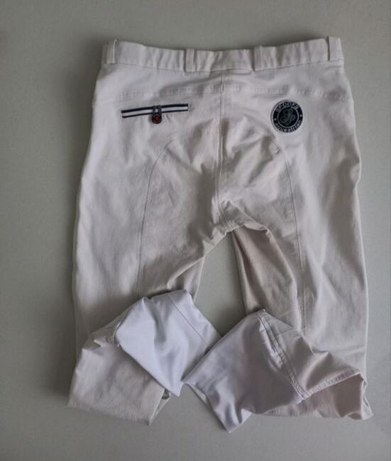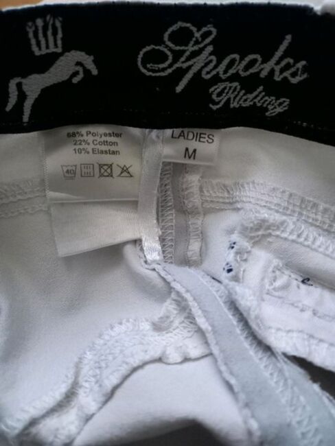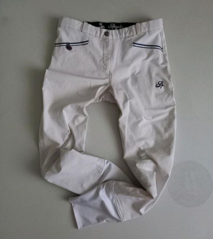 ⭐️Spooks⭐️Weiße Tävlingsknäskydd/knäskydd i storlek M - Byxor i bra skick med knägrepp från märket Spooks i tillverkarens storlek M. Färg: vit. Har normala tecken på slitage, såsom lätt missfärgning på sits och ben från sadelskinn. I övrigt i tipp topp skick, inga hål eller liknande. Där det finns trä, finns det flisor! Redo för 2:a omgången. NP var 130 €.