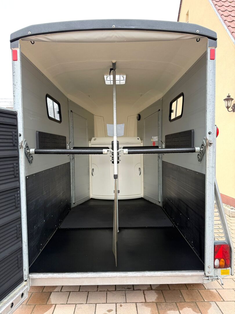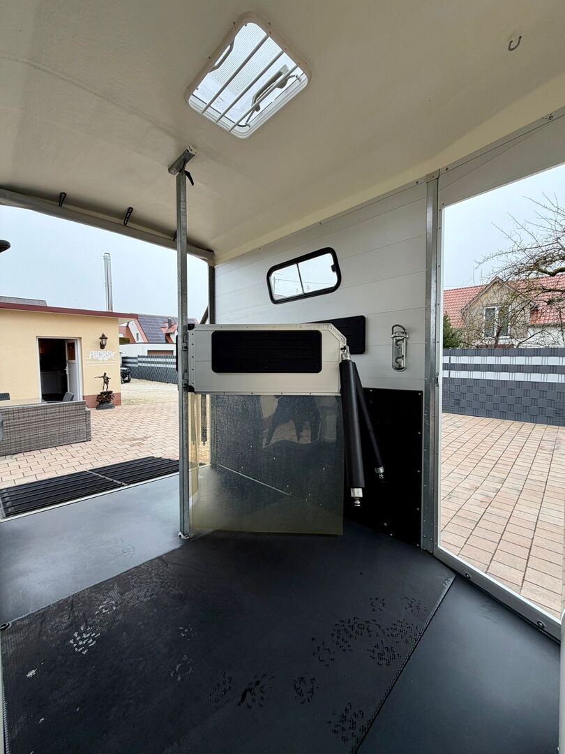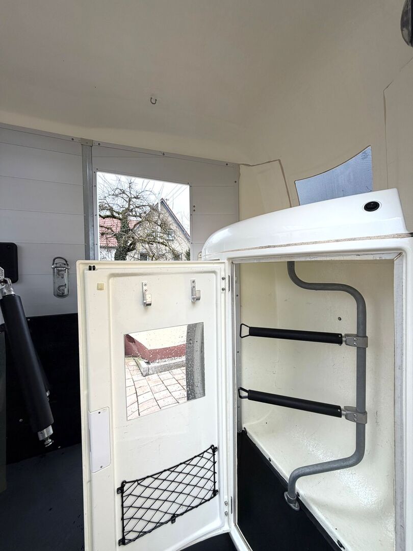 - Första registrering 07/2015 - Vikt utan last ca 900 kg - Tillåten totalvikt 2400 kg - Max. dragstångsbelastning 100 kg - HU fram till mars 2028 - WCF-chassi med oberoende fjädring och stötdämpare - mycket bekväm körning - Däck från 2020 - Låsbar kopplingsback - Automatiskt jockeyhjul - Stort framfönster - Två skjutbara fönster för god luftcirkulation - Sidostopp på lastningsrampen - Presenningslyft med integrerat nät - ❗️Rampen/dörrkombination ❗️ - Taklucka - Stora låsbara dörrar för åtkomst - Låsbar sadelkammare åtkomlig från båda sidor, med svängbar sadelhållare - Invändig belysning - Skiljevägg i PVC som är helt flyttbar med justerbar svängbar balk - Ponnynivellering fram och bak - Vaddering på sidorna - Skydd för steg - Slitmatta - Gummigolv limmat och tätat