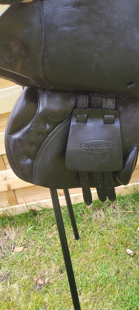 ***TOP*** modern Euroriding Jade hoppsadel 17 tum 30 KW - Chic, modern hoppsadel från Euroriding. Tillverkad av Jorge Canaves, liknar modellen Saphir/Celebration. Endast mycket lite använd. Den har alltid skötts ordentligt och hängt i ett torrt och varmt sadelrum. Det är bara att komma förbi och bli förälskad :). Mot deposition av köpeskillingen är en provning naturligtvis möjlig.