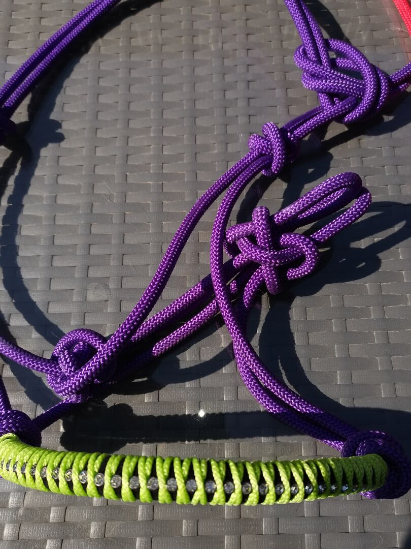 1 knutet halsband, vackert, glitterstenar nya - Erbjuder 1 helt ny knuten halster, i storlek Wb, kan också minskas till VB, har glitterstenar på näsbandet.