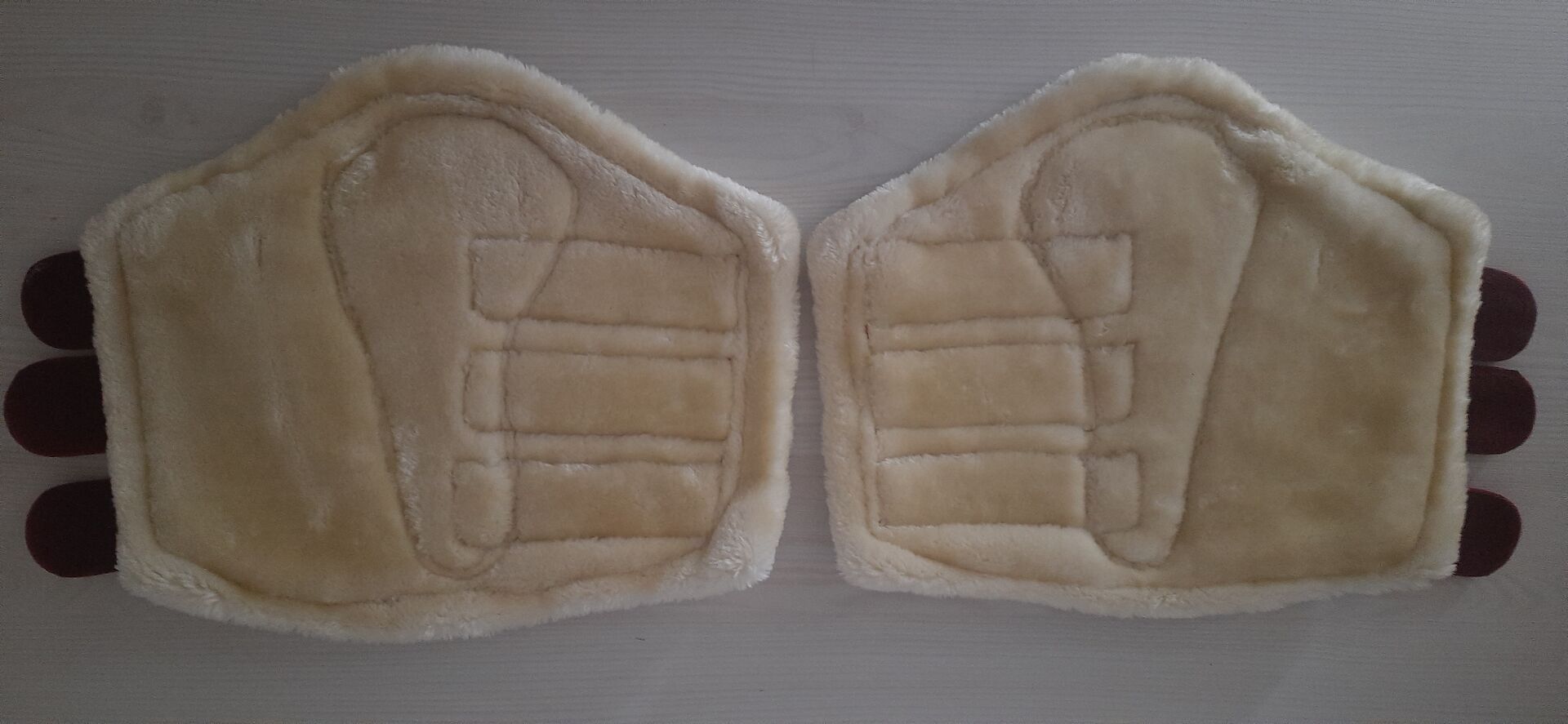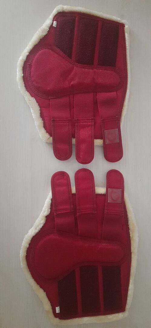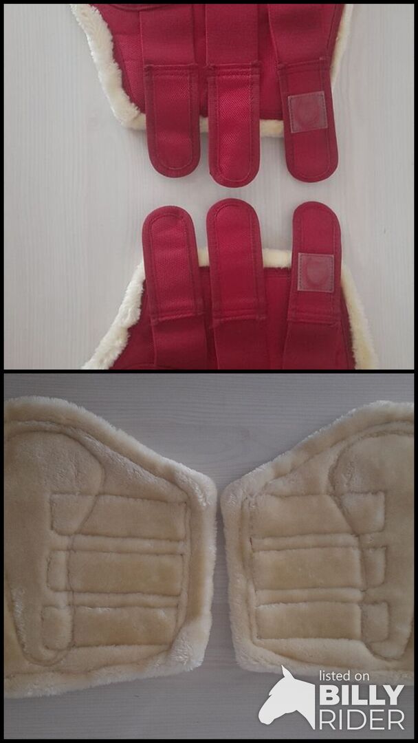 1 par pälsdamasker storlek: XL/WB - 1 par pälsstövlar storlek: XL/WB. Färg: röd. Märke: riderschoice lite använda. Perfekt skick. Pris: 10€.