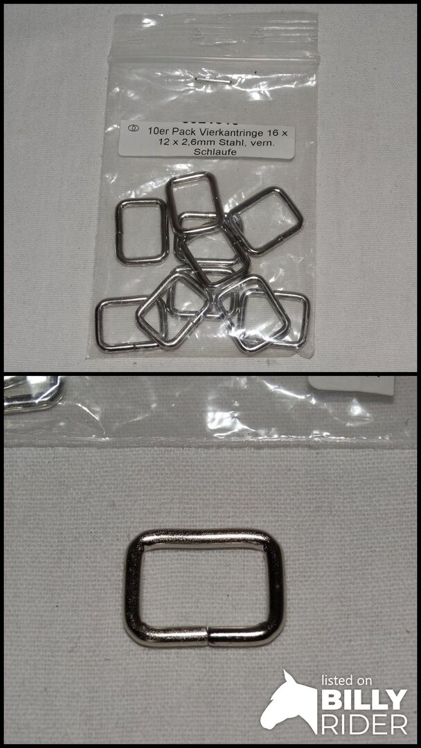 10x fyrkantiga ringar 16x12x2,6mm stål nickelpläterad för western träns huvudbonad hakrem western träns - Jag har 10x nya fyrkantiga ringar till salu. 16x12x2,6 mm. Förnicklat stål. Passar till hakrem, hakkedjor, western huvudlag/western träns eller andra typer.
