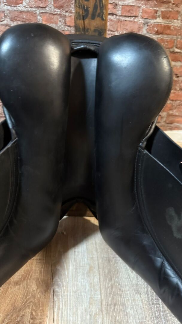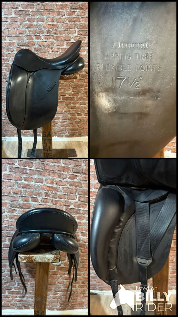 Till salu på kommission finns en begagnad dressyrsadel från Euroriding. Modell Diamant Spring Tee Flexible Points med 17,5 tums sits och medium bredd. Mycket bekväm, djup sits och kort kontaktyta. Idealisk för hästar med korta ryggar.