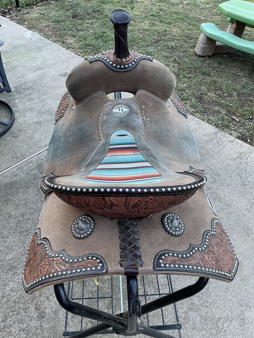Double T brand 14 “ serape western/ barrel saddle. Only used a handful of times. Bought 6 months ago for $475 with tax. Asking $350 Shipping available if needed at extra cost.