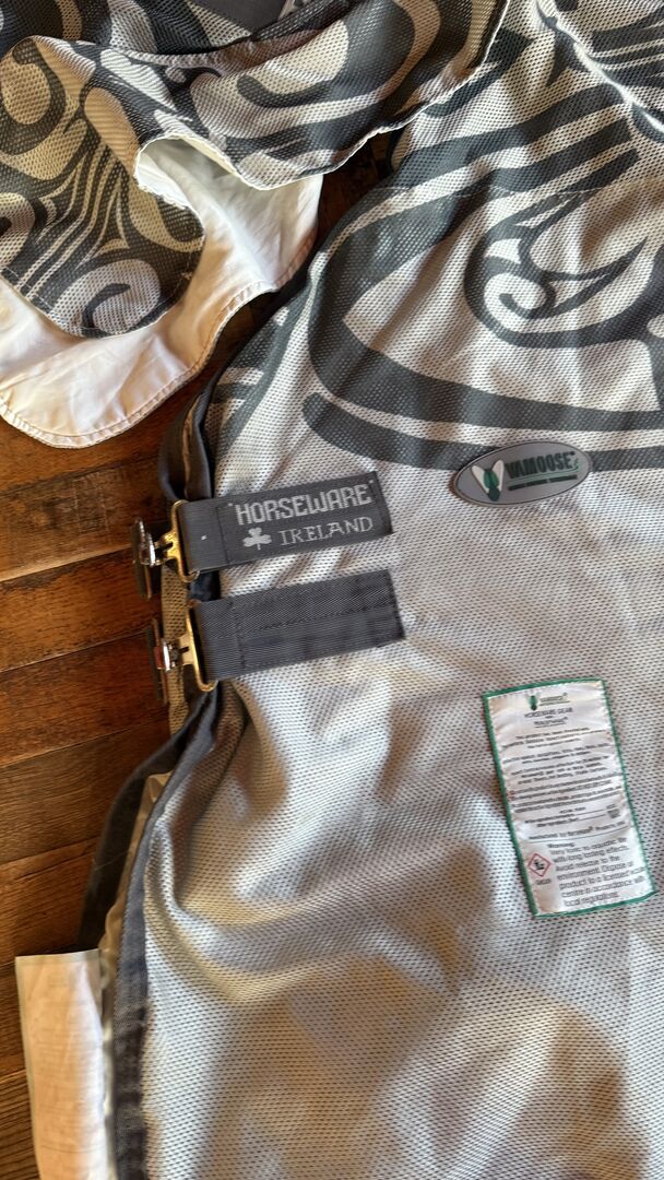 145cm Horseware Amigo Bugbuster All in 1 Vamoose Flugtäcke - Mycket gott skick. Endast metalldelarna är något missfärgade. Nyligen rengjord. Vänligen se bilder för skick. Endast buren under några dagar på timbasis.