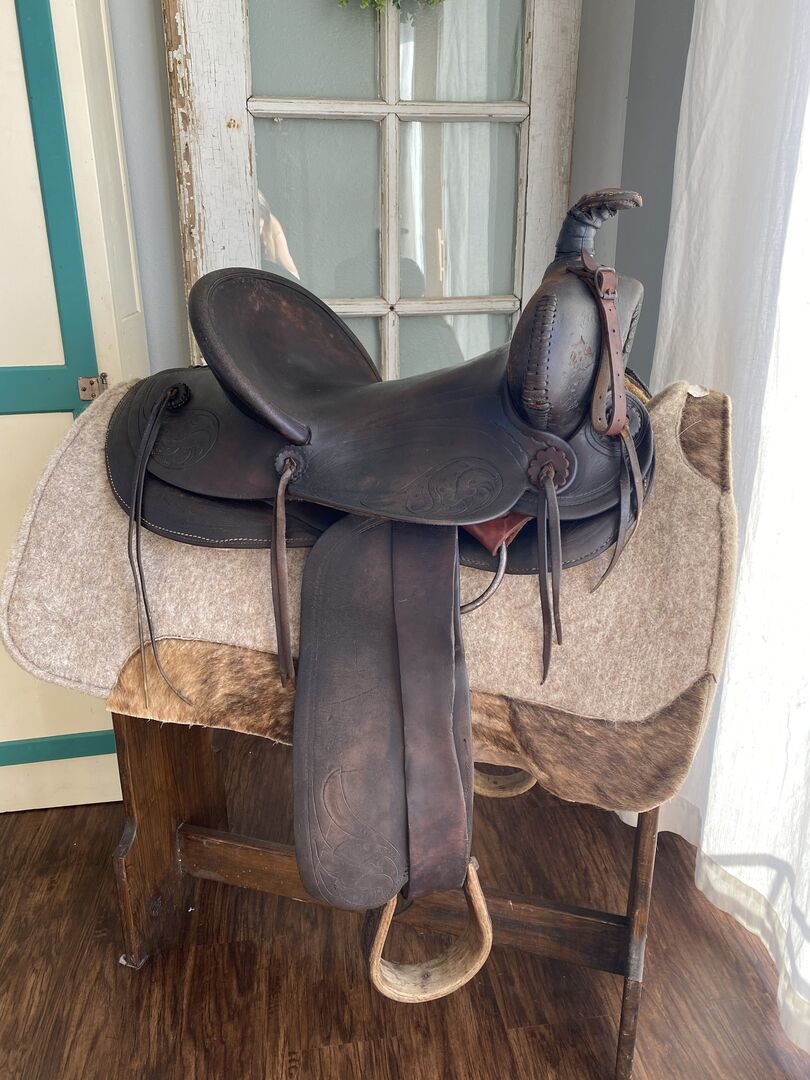 western saddle is in good, pre-owned condition. This saddle has scuffs, scratches, and some regular wear from many years of use; please review photos.