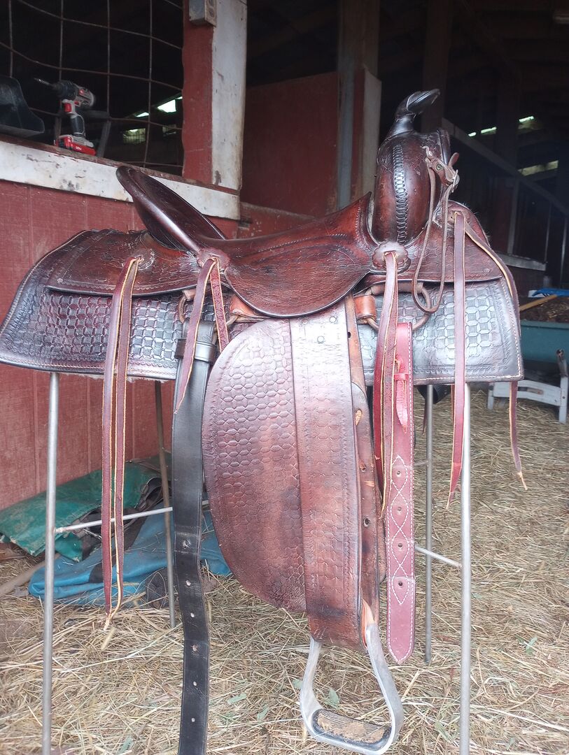 Gorgeous 15" old timers Ranch Slick seat 6" gullet Narrow tree Had some restoration including new fleece a couple years ago. No issues with the saddle, it's in perfect riding condition.