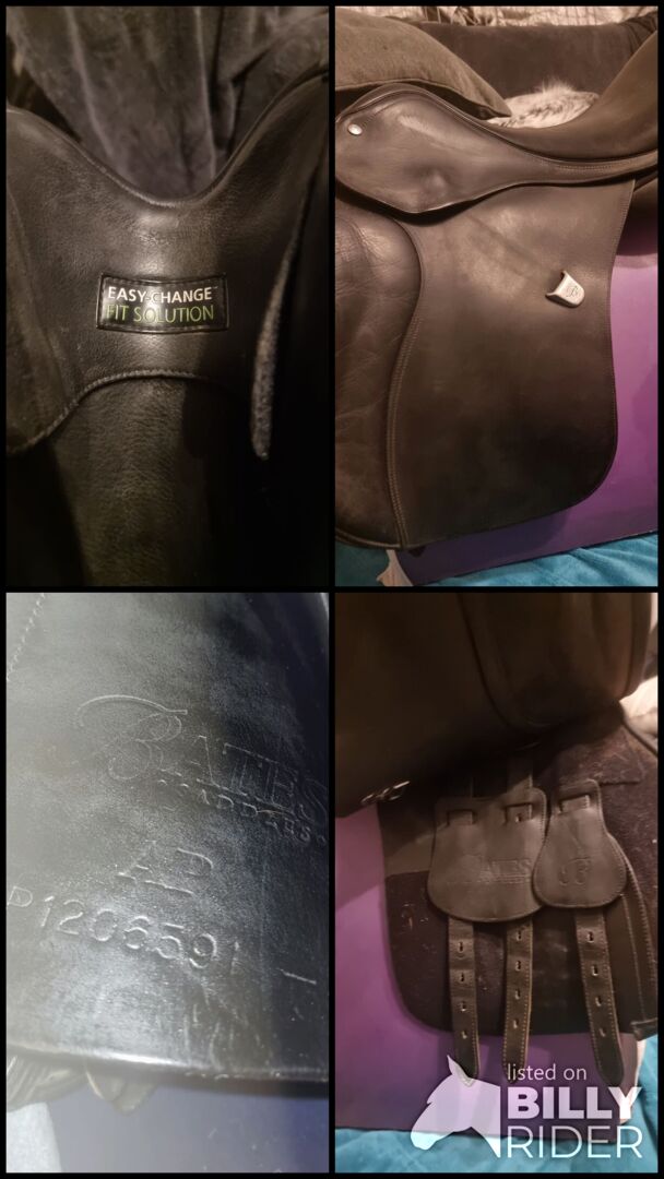 Bates All Purpose Saddle, currently fitted with a blue bar. Only selling due to my youngster needing a wide tree. Been well looked after and checked by a saddle fitter on 17/01/23. Postage available at buyers cost.