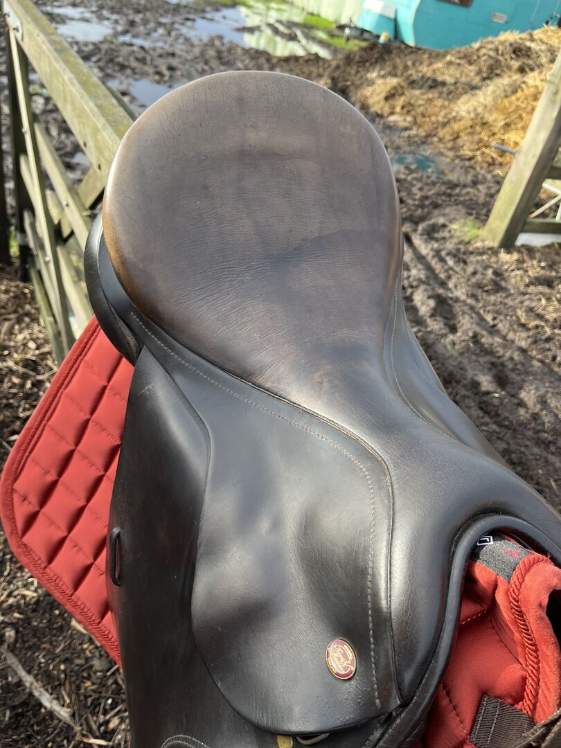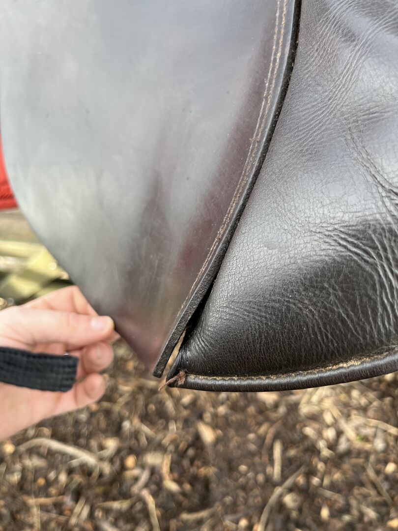 Adjustable gullet, currently in a black. In great condition, straps all good etc no scuffs to the seat. The seat is a little bit faded in colour, but not noticeable once you’re in it. I have conditioned it once and it’s made it a lot darker so a few more goes and it’ll go back to being nice and dark. It’s also lost a few stitches at the bottom of the saddle flaps. It doesn’t affect use, and they won’t get any worse. not much at all, I’ve made it looks worse for the photos to show what I mean! A great comfy saddle that’s sadly no longer needed.