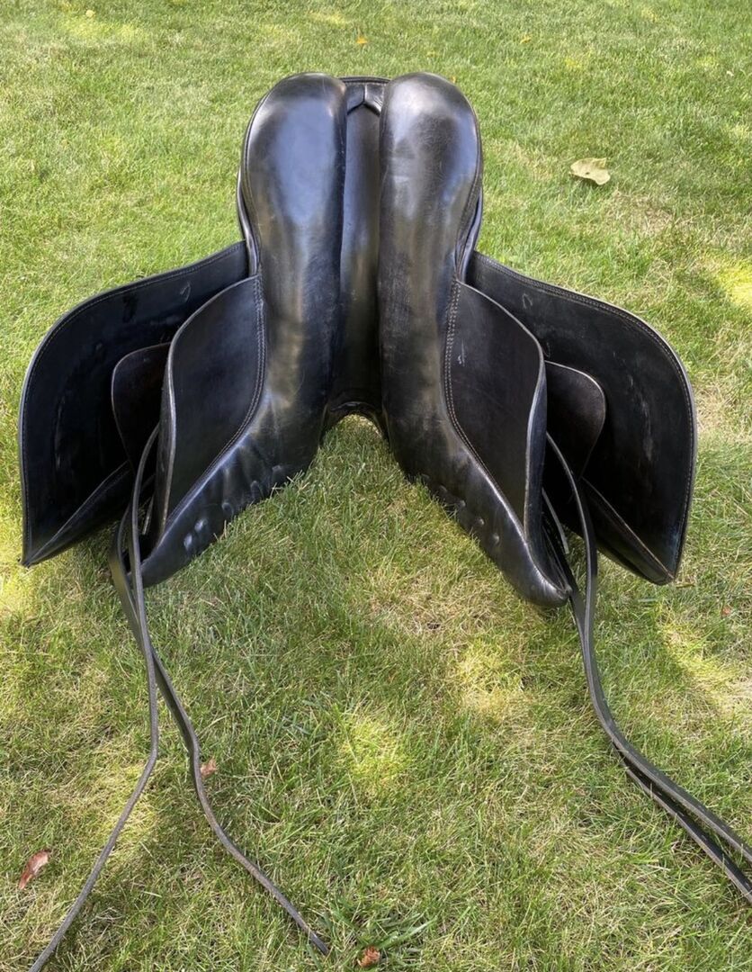 Beautiful used saddle in excellent condition. Grippy leather. Wool flocked. Selling with leathers, Flexi stirrups and dust cover