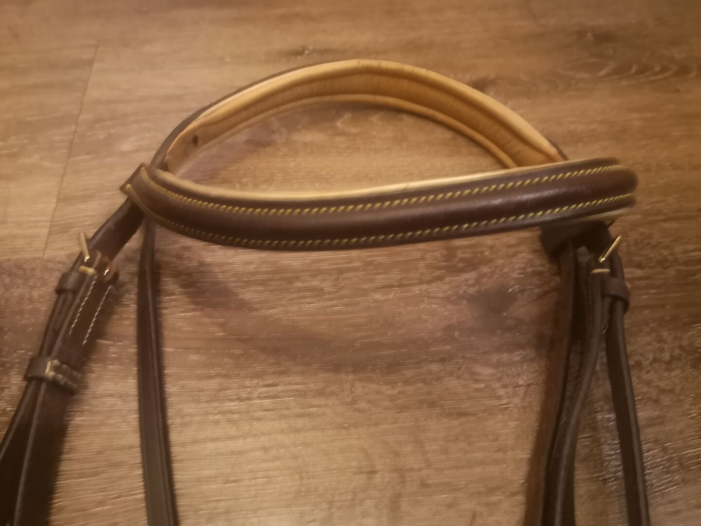 2 olika huvudbonader för storlek Cob/ Full - Huvudbonad - Jag erbjuder 2 huvudstall den bruna är som ny och den svarta är fortfarande bra att använda, men några stenar saknas redan, båda lämpliga för storlek Cob / Full.