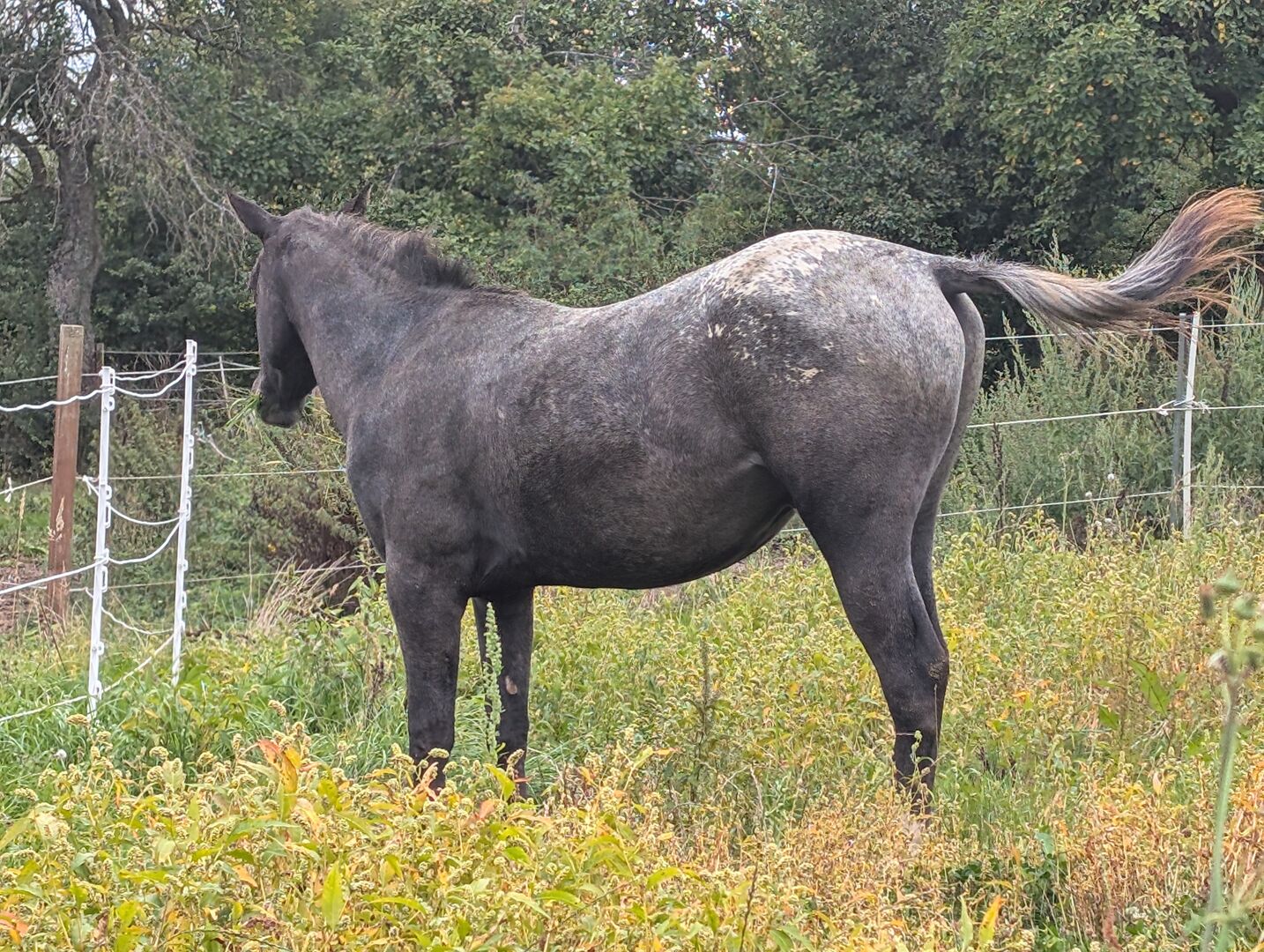 2 år gammal unghingst ApHC - Vacker ung hingst, kommer att vara lång ca. 158 cm, kommer också att säljas som valack, han är mörkbrun roan.