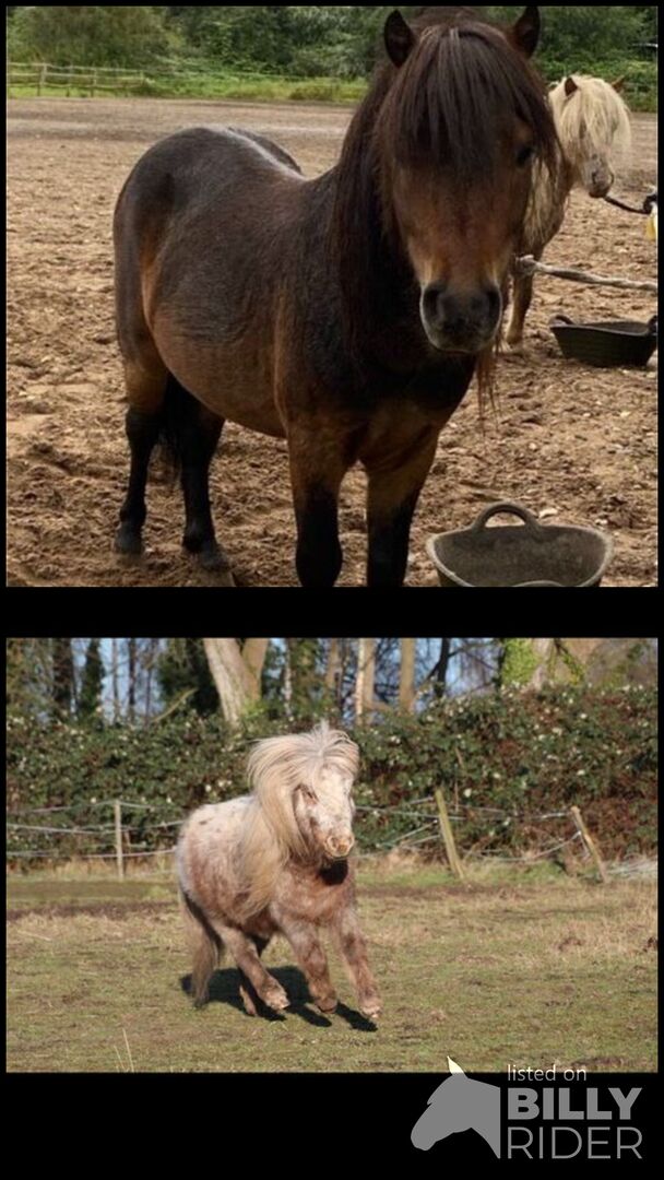 Det här är vad de erbjuder: - Mycket lätt att hantera - Tricks, markarbete och liknande är möjliga med båda utan problem - Besättningskompatibel, för närvarande i en valackbesättning - Inget starkt uttalat hingstbeteende - Den ljusa hingsten är förtjust i barn, den mörka är det inte (därför inte en klassisk barnponny) - Båda är friska och har inga tidigare sjukdomar