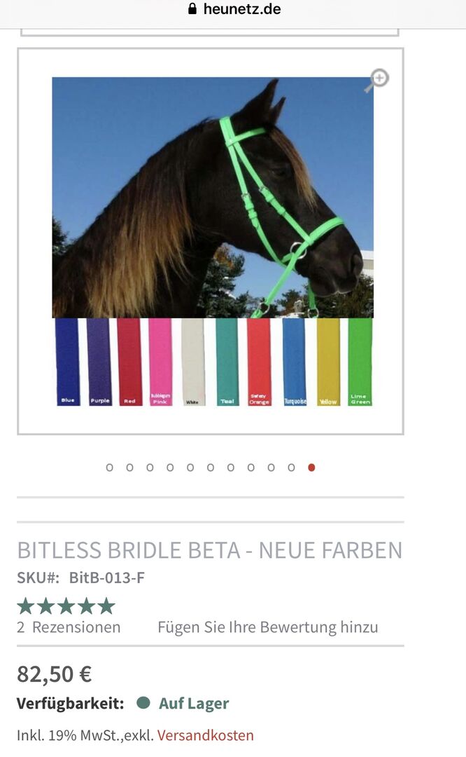 Bitless , amerikanskt patent. De är tillverkade av Biothane, ett veganskt material som är lätt att sköta och fritt från mögel. De har knappt använts och har behandlats med omsorg.