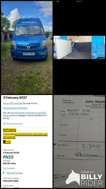3.5 ton vauxhall mavano for sale, 12 months mot. 1 ton payload. New battery. Loads of paperwork