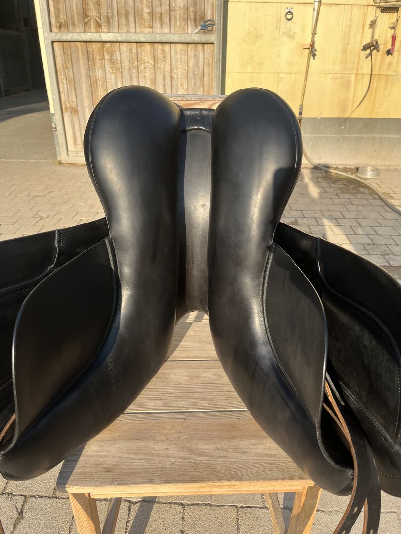 Jag säljer en 3S dressyrsadel i mycket gott skick med stabiliserande paneler. Sadeln är 5 år gammal och har inte använts ofta. Den har inga märken eller sprickor och har alltid varit väl omhändertagen. Den har paneler med kardborreband för justering. Den har en halvdjup sits och är mycket bekväm. Sadelkammarens bredd är ca 33/34.