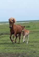 Hjördis från Nieblumerfeld FEIF-ID: DE2022222869 Född: 28 maj 2022 Mor: Hamingja Fader: Glanni frá Austurási (en son till Stáli frá Kjarri) FIZO Elite med 8,26 som fyrgångare, inklusive 9,5 för tölt och 4 andra 9-betyg Kön: sto Färg: kastanjebrun med ljus man och stjärna