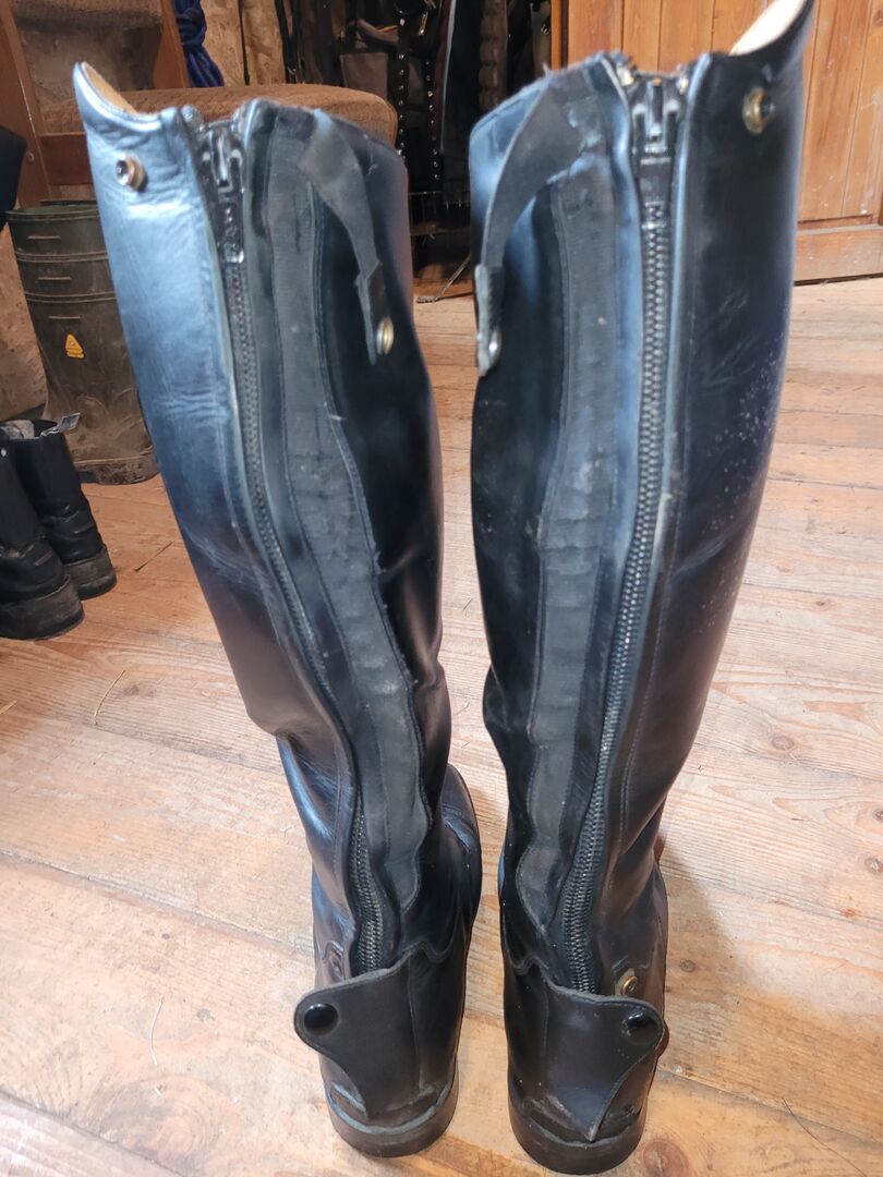 4Riders läderstövlar 40 M H47 W39 - Sliten men nu tyvärr för stor. En av tryckknapparna på baksidan av hälen är defekt. Men det har aldrig stört mig.