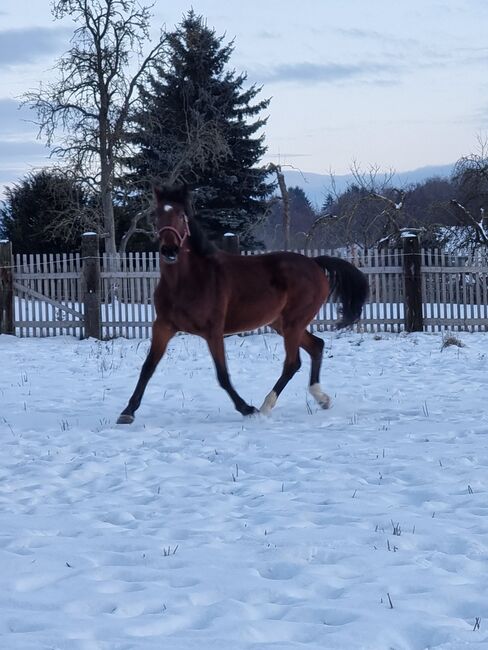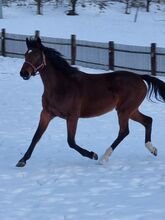 5 år gammalt Holsteiner sto, unghäst av Hickstead Blue - Erbjudandet gäller Holstein-distriktets premiumsto Olivia KM av Hickstead Blue x Comme il faut x Caretano från linje 104A, född 10.04.2021.