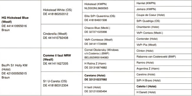 Hickstead Blue har utsetts till mästerhingst och imponerar med sin ärftliga kraft. Hans stamtavla är särskilt anmärkningsvärd. Hans far, Hickstead White, en Oldenburg-hoppning, och hans mors far, den berömda Chacco Blue, bidrar till hans enastående genetik.