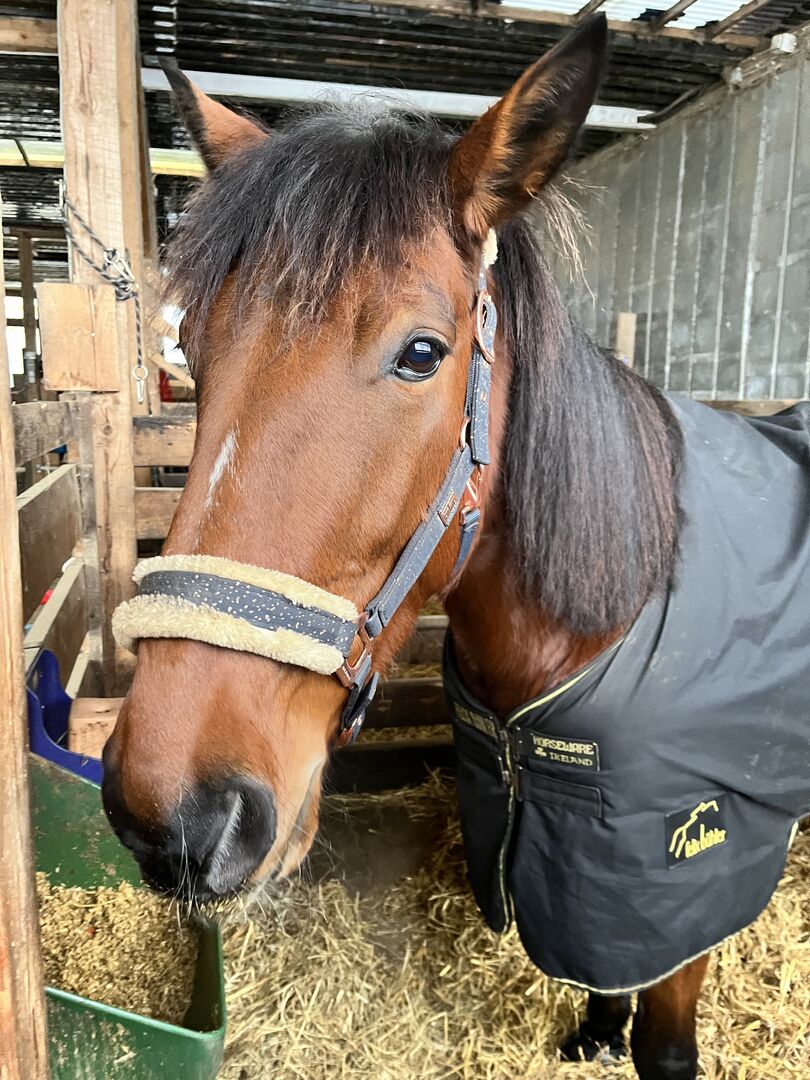 Hon känner till hovslagaren, veterinären och vet hur man kör en släpvagn. Hos hovslagaren gillar hon att röra på sig lite, vilket också beror på hennes bristande balans, men med några knep för att distrahera henne är det inga problem.