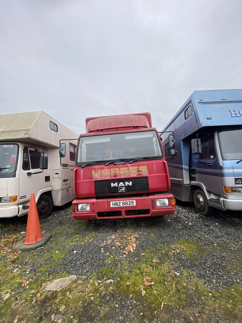 Red 7.5 ton MAN Horsebox, Plating until May, new clutch fitted a few months ago, starts first time, does need some tlc but runs fine, the gears crunch sometimes, 2 ton payload, can easily stall 4 horses/ponies, electric ramp, camera fitted to horse area and fans, small living area, lots of storage space, 94500 miles on the clock, registered in 2000, selling as change in family circumstances