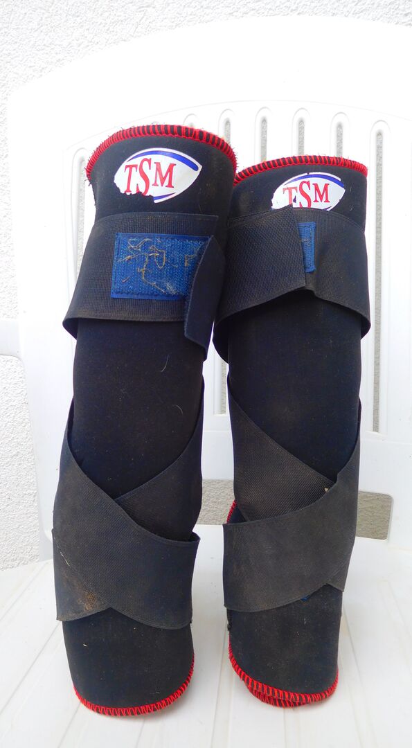 7160 TSM vet-Reha Pastern huvudstöd bak storlek S - TSM vet rehab fetlock huvudbandage storlek S Det öppna, anatomiskt formade neoprenbandaget omsluter flockböjningen, flockhuvudet och den nedre halvan av bakbenets kanonben. av bakbenets kanonben. Förutom kardborreknäppningarna är hästbandaget försett med ett bandliknande band av elastiskt och oelastiskt material. Detta band fungerar som en stabilisator vid senskador av den ytliga böjsenan, vid skador på hasapparaten och vid skador på sidoligamenten. TSM vet rehab fetlock head bandage kan aktivt stödja läkningsprocessen under konvalescensen, som ofta varar i flera månader. TSM vet rehab fetlock head bandage kan stödja läkningsprocessen under konvalescensen, som ofta pågår i flera månader, genom att åstadkomma en mycket signifikant mätbar minskning av fetlockens ledvinkel i grenen. ledvinkeln i grenen. Den påverkade sen- och ligamentapparaten i bakbenet avlastas. Dessutom påverkas läkningsprocessen positivt av de kända materialegenskaperna hos TSM-stöden. Detta uppnås genom att blodcirkulationen främjas med åtföljande acceleration av metaboliska processer metaboliska processer, samt genom avsvällning genom lokal kompression. Observera att du inte bör flytta din häst snabbare än en promenad när bandagen är på! Pris: 85 € inkl. frakt Storlek: S-Min häst var en fullblodstyp med Stkm. 165 Från privat säljare utan garanti utan retur utan garanti