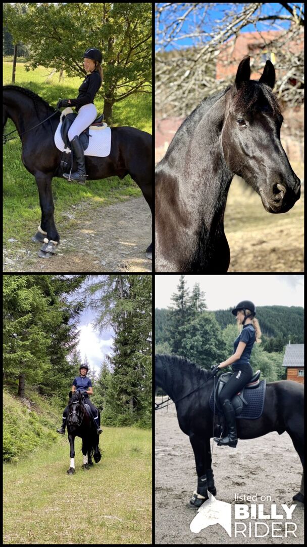 8 år gammal Sport/Leisure Friesian - Till salu är en imponerande 8-årig sport/fritid Friesian med elegans. Den här valacken är ett absolut blickfång med sin svarta färg och kraftfulla kroppsbyggnad. Hans eleganta och uttrycksfulla gångarter gör honom till en riktig pärla. Med sitt extraordinära uttryck och sin karisma förtrollar han varje ryttare.