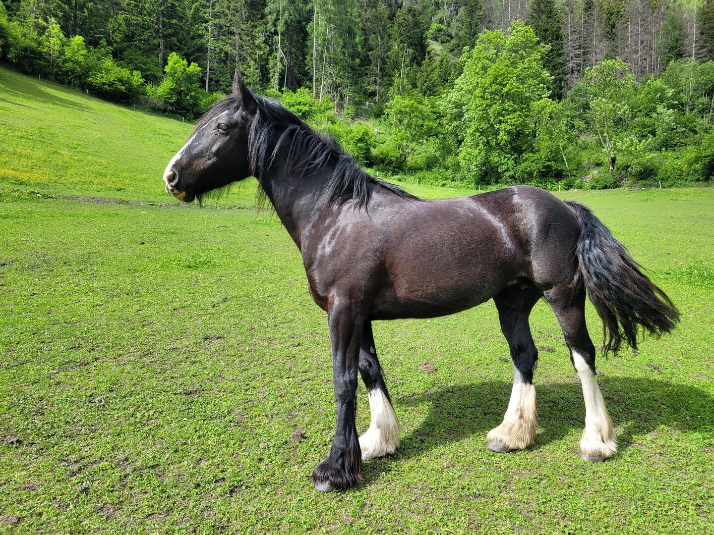 Jag letar efter ett nytt, kärleksfullt hem för mitt 8-åriga Tinker-sto Josie (148cm) som en markarbetshäst eller sidohäst.