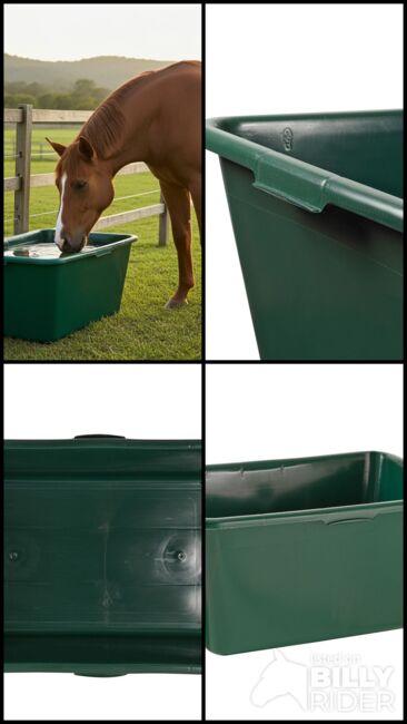 Beskrivning: Mycket robust plastbalja av ny plast och livsmedelssäker. Idealisk för användning som foder-, vatten-, mortel- eller spelbricka. Mindre algbildning tack vare den släta ytan, inga ångor när den är varm. Detta tråg tillverkas utan mjukgörare i Tyskland enligt strikta specifikationer.