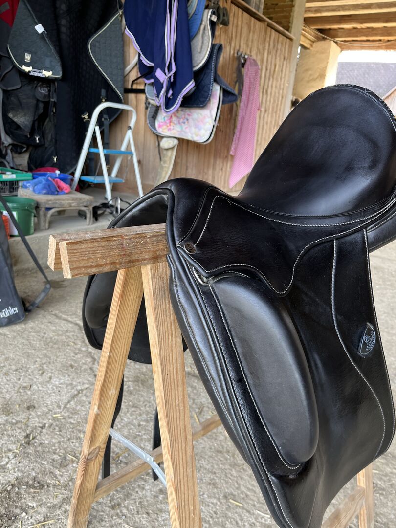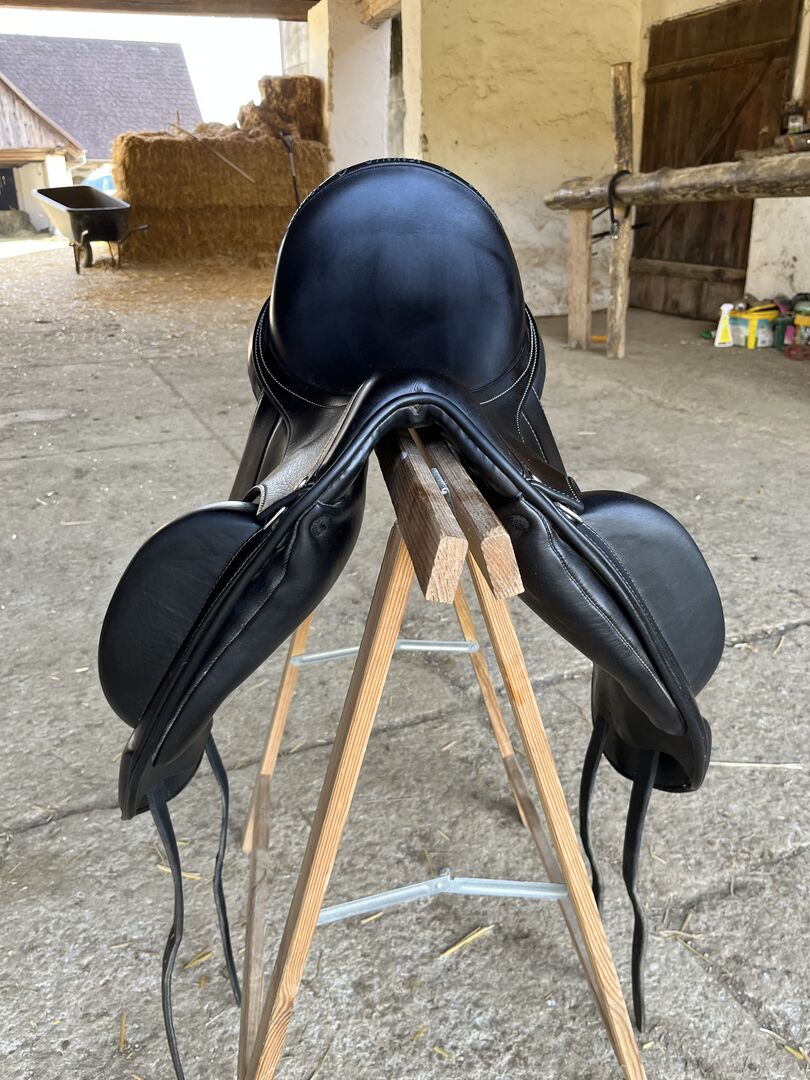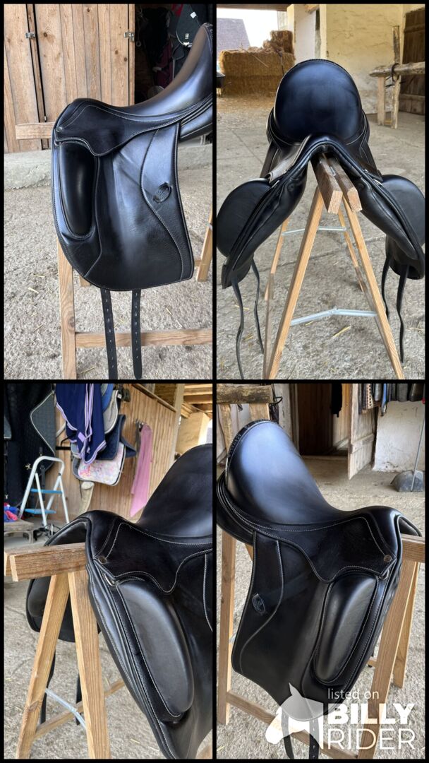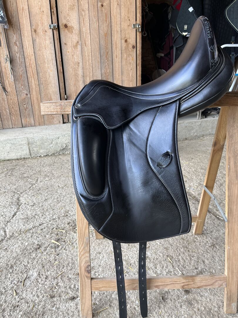 Acavallo dressyrsadel 17" till salu. Är 2 år gammal, används på en kort WB. Mycket djup, bekväm sits, mono flap.