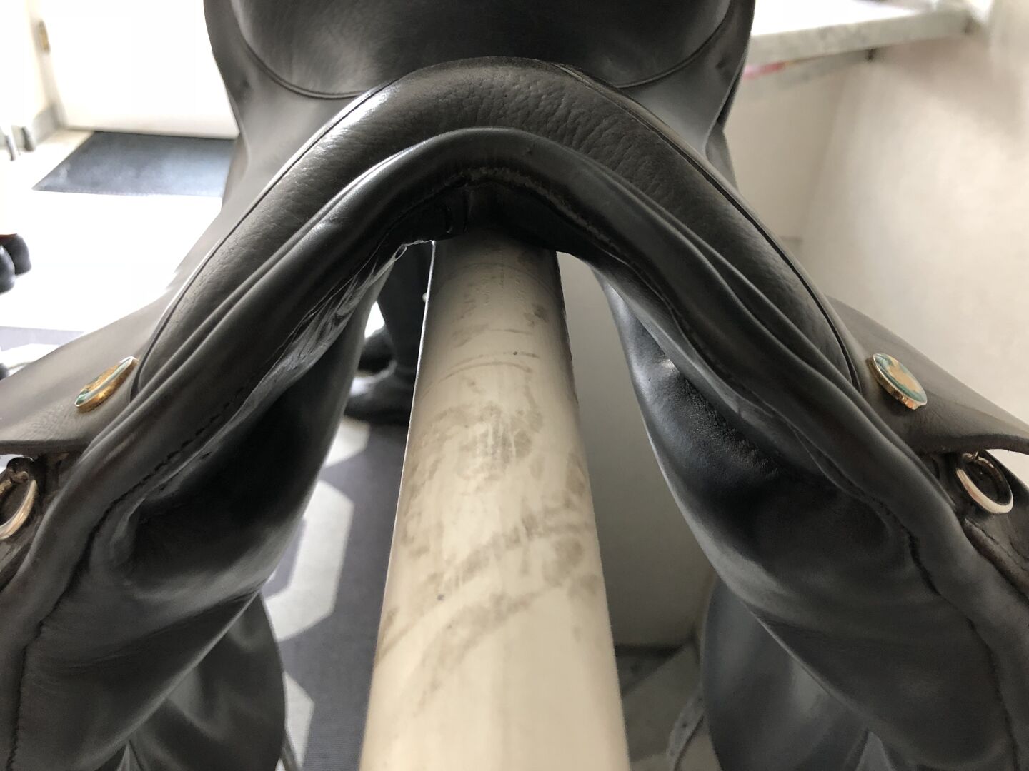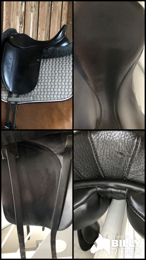 Ainsley dressyr sadel luft vadderad - Säljer min Ainsley dressyrsadel med integrerade luftpaneler som är bra för hästar som gillar att byta rygg. Kammaren kan ändras manuellt, vilket gör att sadeln kan anpassas till nästan alla hästar. Sadeln har 17'.