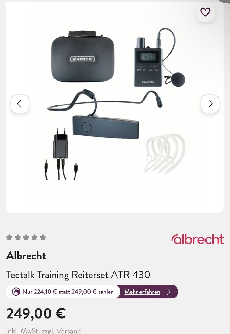 Albrecht ATR 430 hästtränarradioset - så gott som nytt - Till salu en Albrecht Tectalk Training Rider Set ATR 430. Trådlöst tränarmikrofonsystem för ridlektioner.