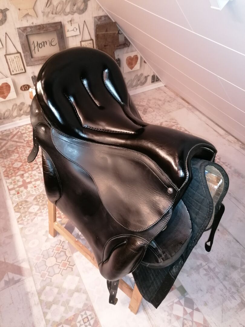 Sadeln är i gott använt och mycket välskött skick. Materialet på panelerna är delvis skadat (se bilderna), men detta begränsar inte sadelns funktion och användning.