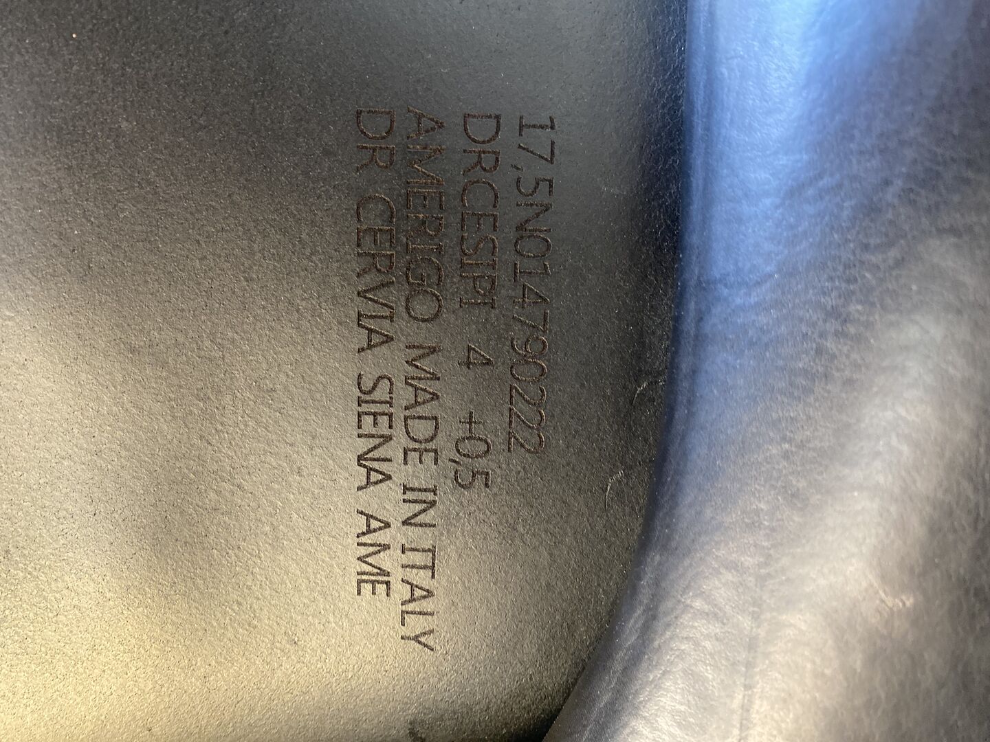 - Modell: Amerigo Cervia Siena - Sadelstorlek: 17,5 tum - Sadelkammarens bredd: 4 +0,5 (justerad för god axelfrihet) - Färg: Svart - Skick: Som ny - Tillverkad i Italien