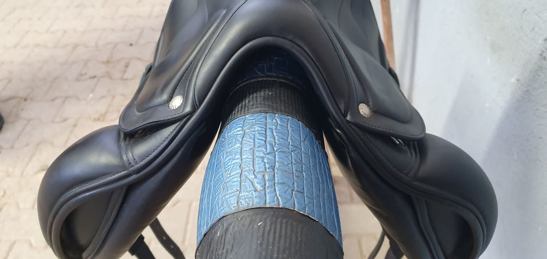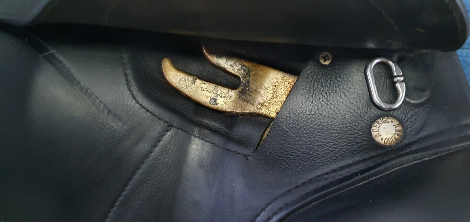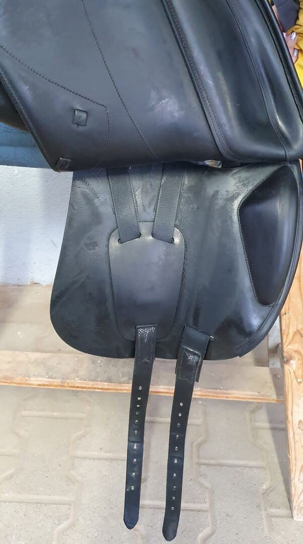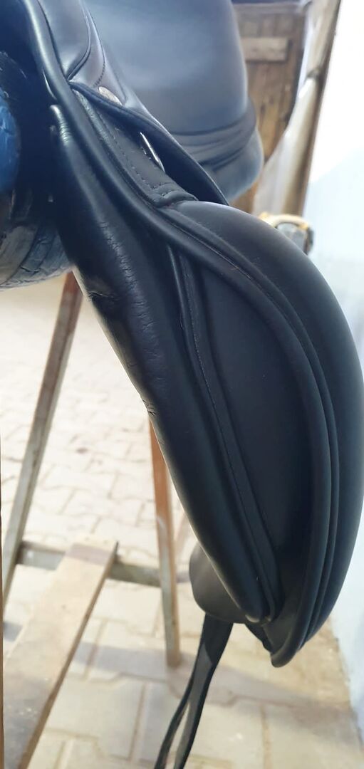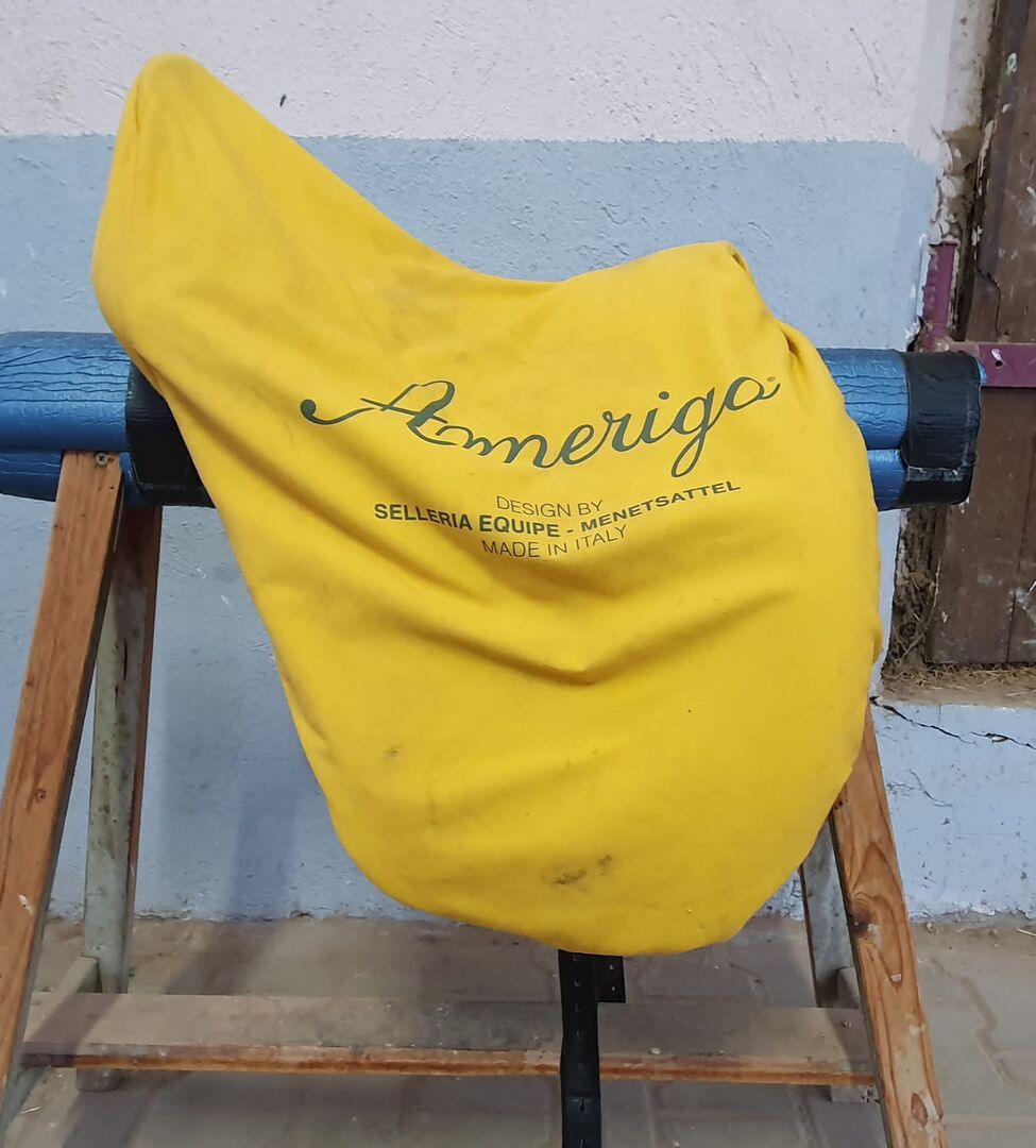 Sadeln har inga defekter eller konstigheter (förutom en liten nötning från stigbygeln) och har alltid varit välskött. Den har endast rengjorts med Amerigos speciella sadelrengöringssats.