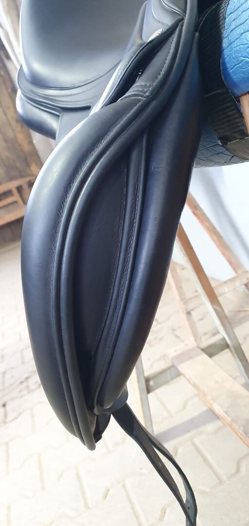 Amerigo Classic Dressage Pinerolo SW för hög skänkel och sväng i ryggen, 17,5". Sadeln har en något förkortad sadelklaff, så den är perfekt inte bara för långa ryttare utan även för korta.